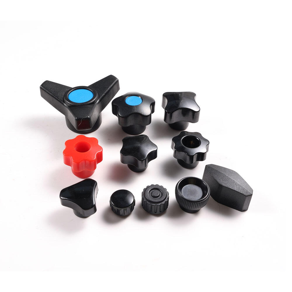 Our clamping knobs are available in plastic, bakelite, nylon, stainless steel, aluminum in various styles of star knobs ,three arm knobs, lobe knobs, wing knobs, ball knobs. Threaded part can be male or female thread of stainless steel, ms steel, brass.